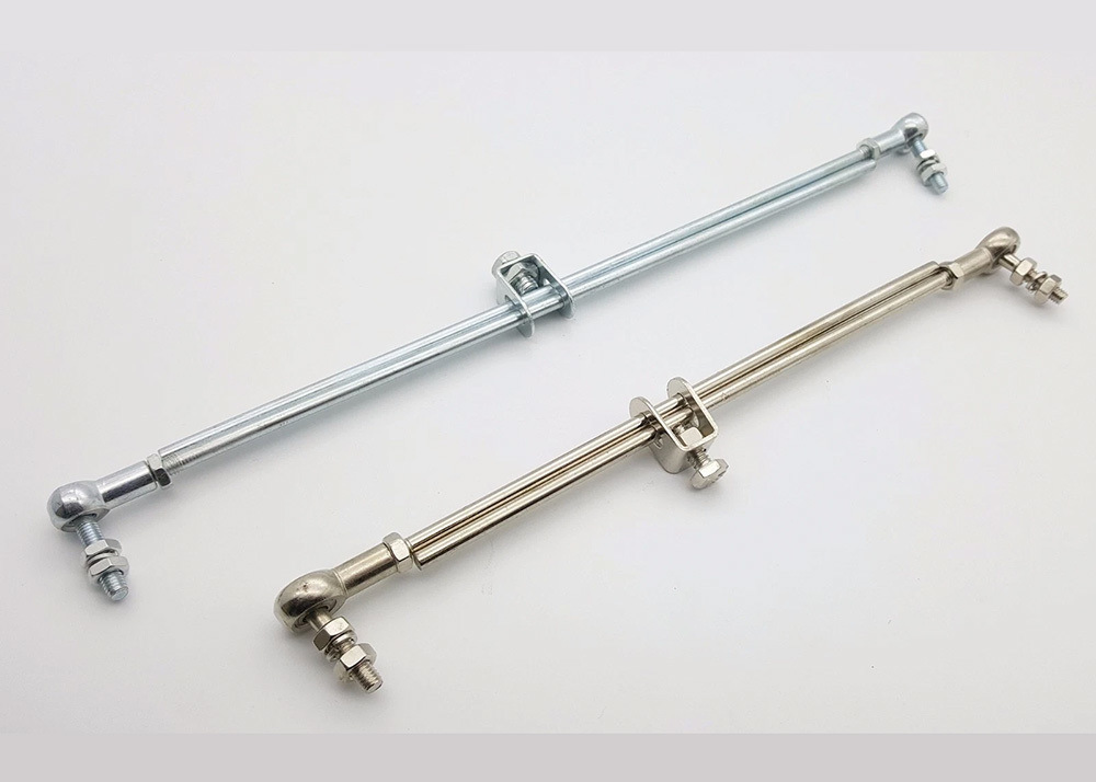 Ta wysokiej jakości stalowa wymiana systemu cięgna z przegubem kulowym jest w pełni kompatybilna z wieloma przemysłowymi maszynami do szycia. Cięgno łączy dźwignię sterowania silnikiem i pedał nożny stołu maszyny, wyposażone w przegub obrotowy przykręcony na każdym końcu dla płynnej pracy.