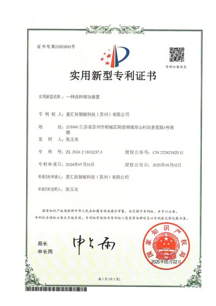 Standard: Utility Model Patent Certificate Number:ZL 202421775000.4 Issue Date:2025-05-02 Issued By:National Intellectual Property Administration |